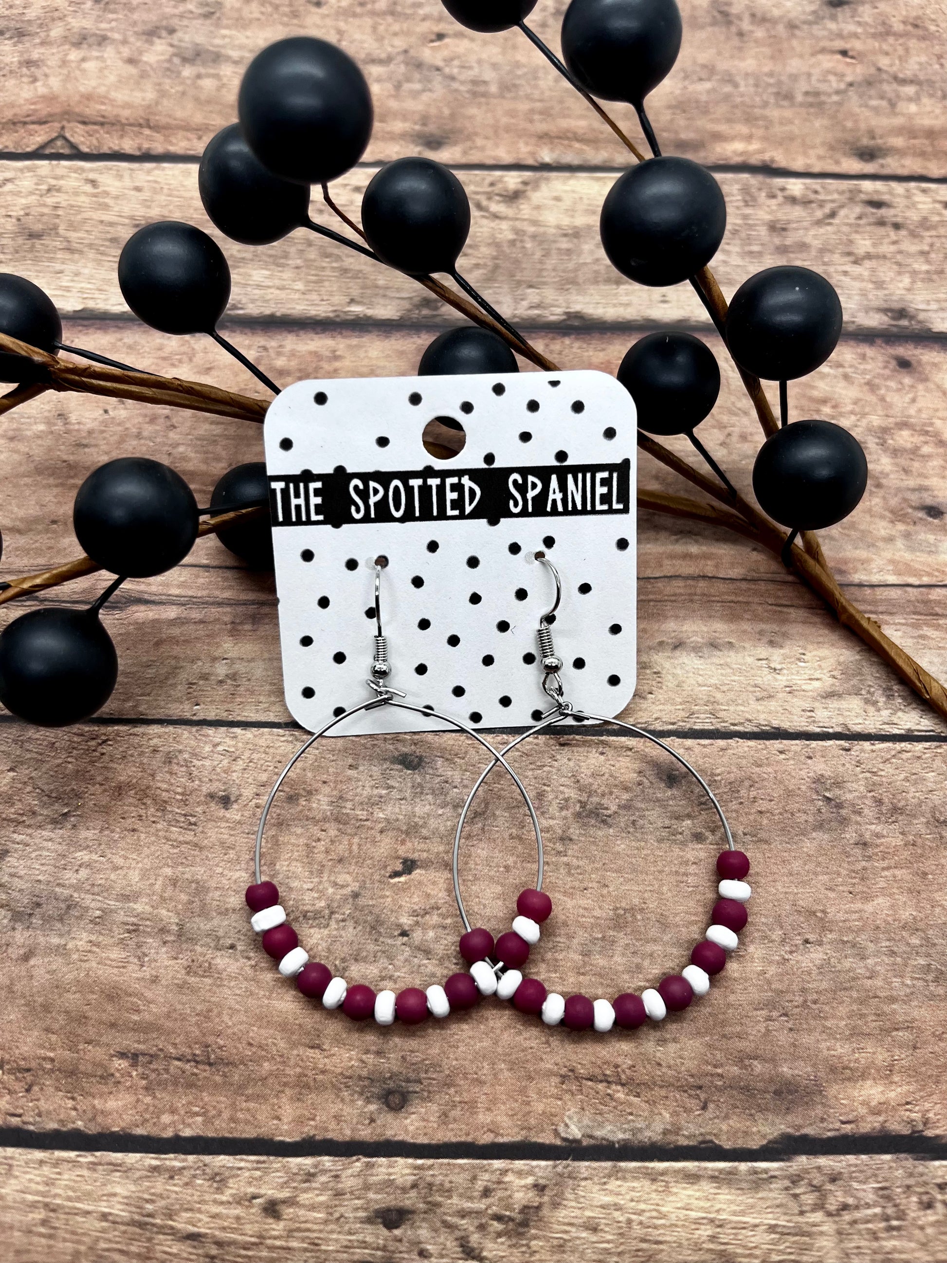 You can’t go wrong with hoop earrings! These earrings are made with glass beads.